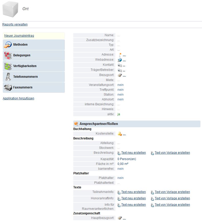 Das Set an Eigenschaften ist für jeden Ort, egal welcher Art (Gebäude, Raum, ...), immer gleich aufgebaut. Selbstverständlich benötigt man so manche Eigenschaft eines Raumes, wie z.B. Stockwerk, nicht für ein Gebäude. Lassen Sie diese Eigenschaft dann einfach frei.