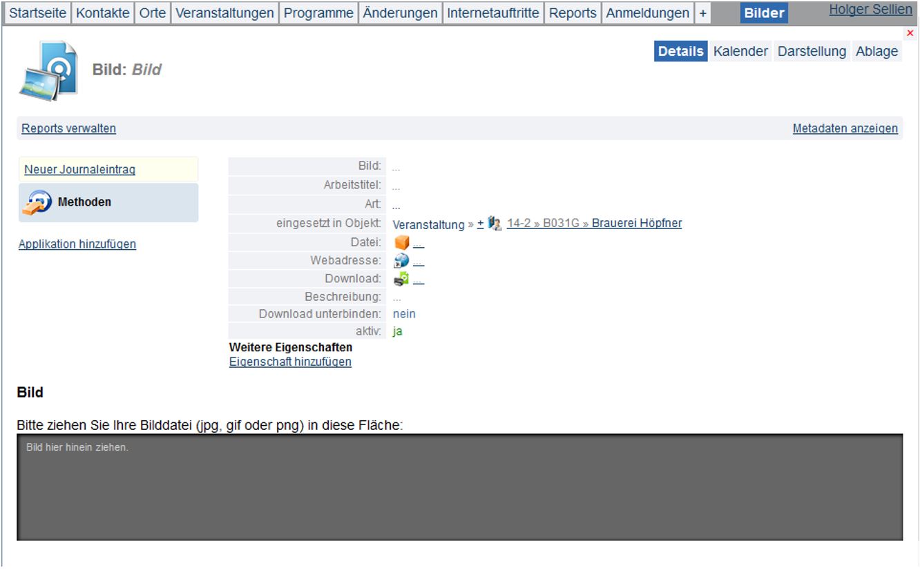 | aktiv | Über "ja"/"nein" wird gesteuert, ob das Bild auf der Website zu sehen ist oder nicht. | Anzeige | Internet |