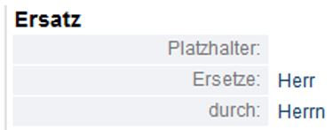 Soll bei der Anrede z.B. „Herr“ durch „Herrn“ ersetzt werden, müssen die Einträge wie folgt aussehen: