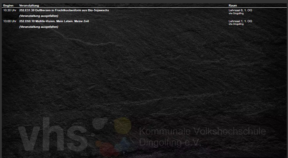 - Auf einem Display werden Termine angezeigt, unabhängig davon, ob diese mit einer Veranstaltung verknüpft sind oder nicht.
