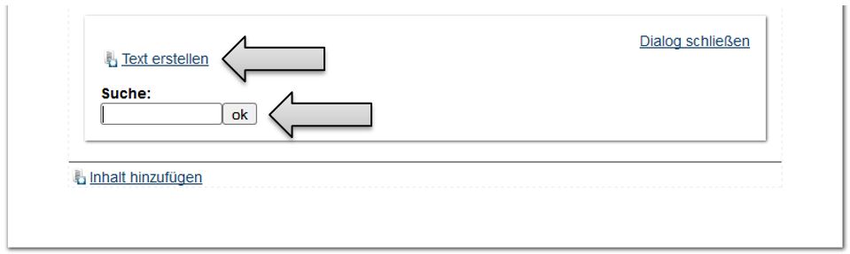 Nun kann entweder ein vorhandener Textblock durch Eingabe in das Suchfeld eingefügt werden oder mit dem Link „Text erstellen“ ein ein neuer Text geschrieben werden.