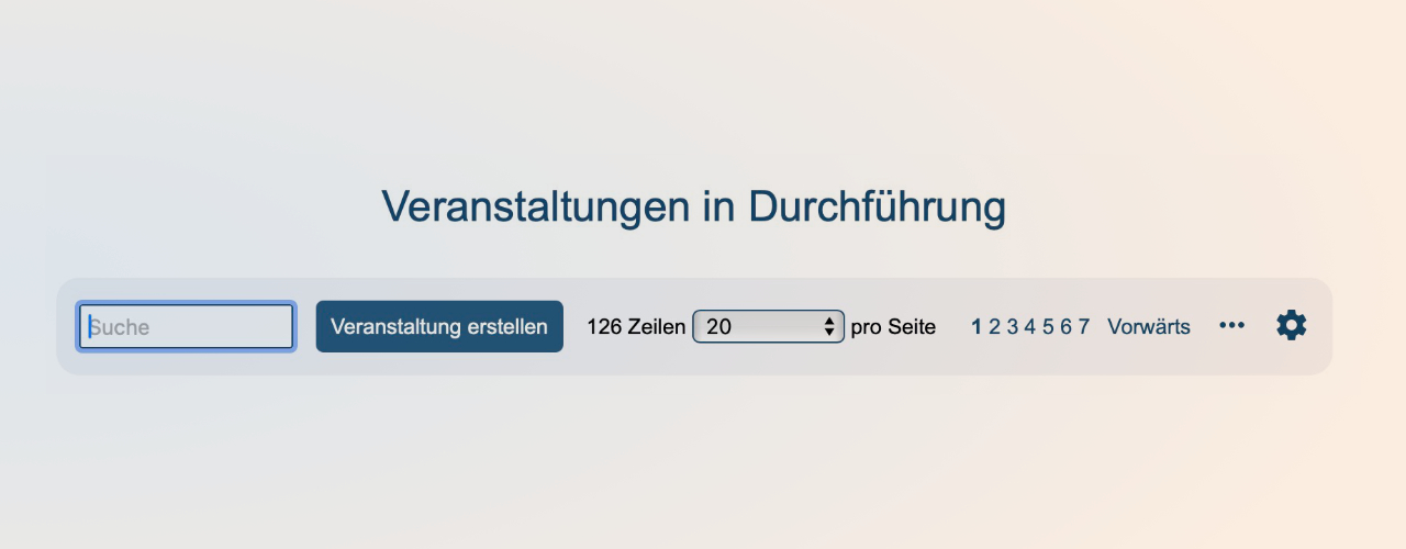 - Wie gewohnt zeigt die Hauptnavigationsleiste die ausgewählte Objektart (im Beispiel "Veranstaltungen")