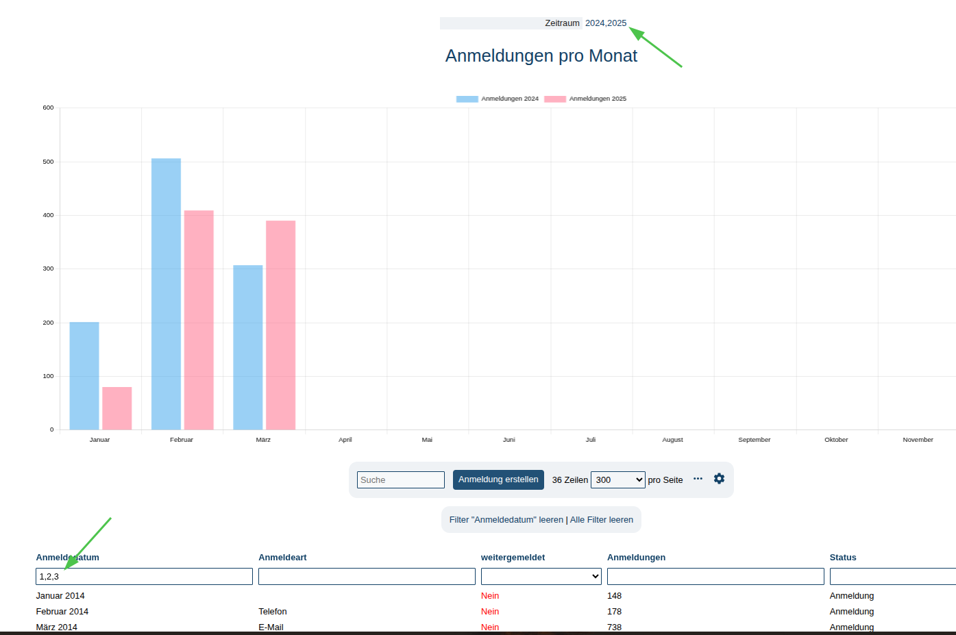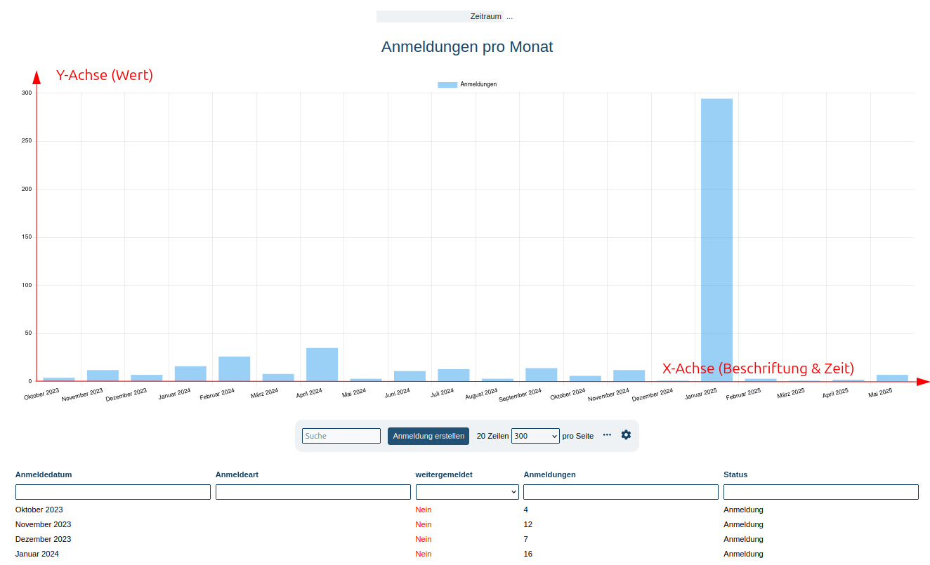 Zur Verdeutlichung schauen wir uns das ganze am Report "Anmeldungen pro Monat" an.