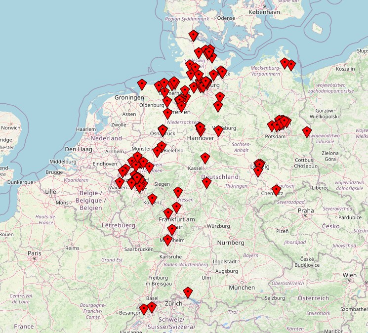 Mit der Schnittstelle zu OpenStreetMap können Adressen von Teilnehmenden in einer Kartenansicht dargestellt werden. So kann das Einzugsgebiet für eine bestimmte Veranstaltung, einen bestimmten Themenschwerpunkt oder ein Fachgebiet nach Zeitraum anschaulich dargestellt werden.